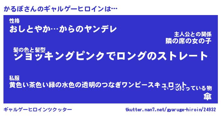 | 男性向けラノベタイトル風あだ名 | 『かるぼの憂鬱』 |