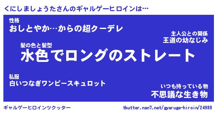 | 男性向けラノベタイトル風あだ名 | 『くにしましょうたの憂鬱』 |