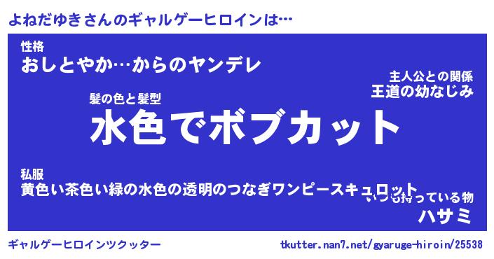 | 男性向けラノベタイトル風あだ名 | 『よねだゆきの憂鬱』 |