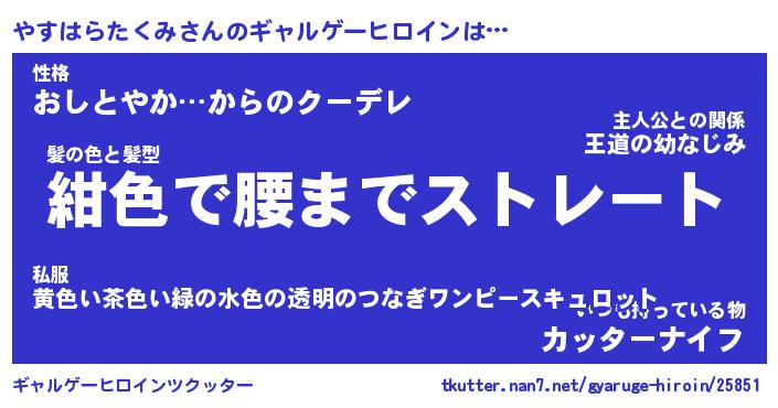| ヘコむあだ名 | 『やすっふぃ~』『つくし』 |