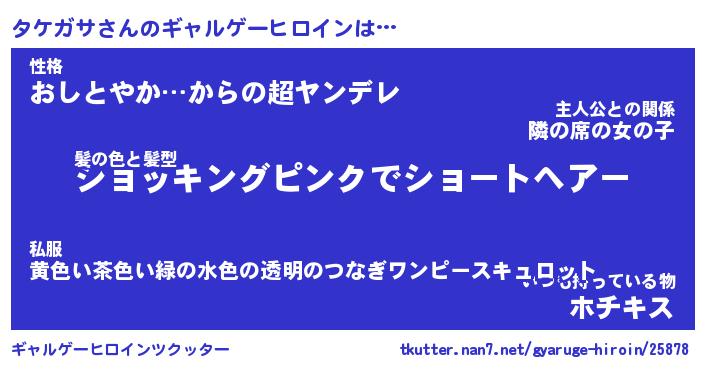 | 男性向けラノベタイトル風あだ名 | 『タケガサの憂鬱』 |
