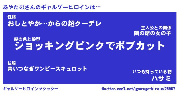 | ファンタジー風あだ名 | 『アヤフェル』『エターナルアヤタムー』 |