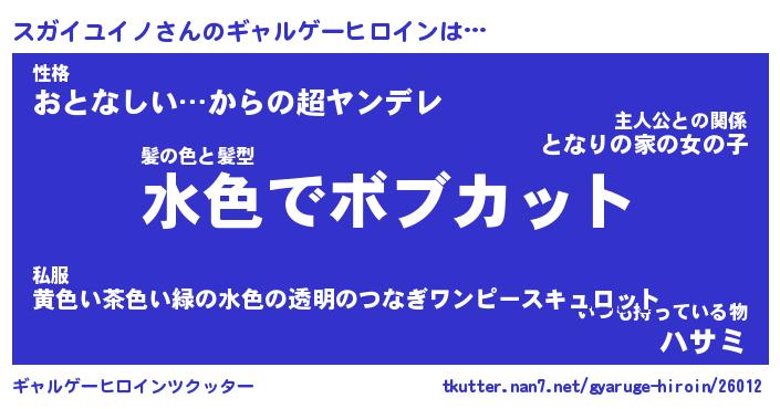 | 男性向けラノベタイトル風あだ名 | 『スガイユイノの憂鬱』 |