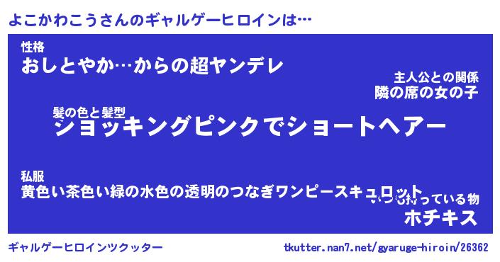 | 女子向けラノベタイトル風あだ名 | 『(仮)よこかわこうのやんごとなき事情』 |