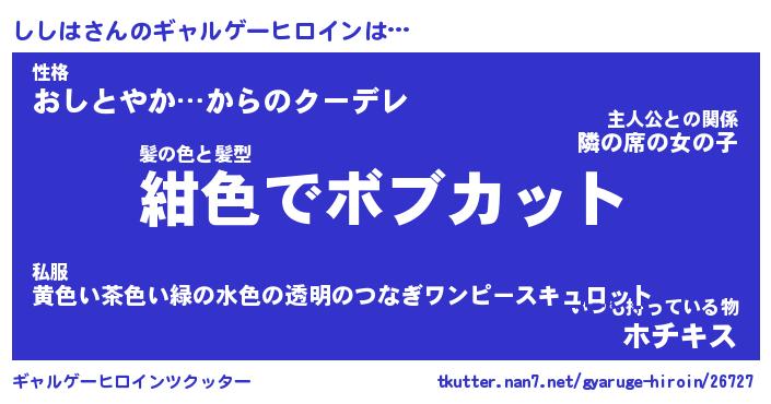 ヘコむあだ名 | 『ししふぇ~』『牛乳』『ししぷりん』 |