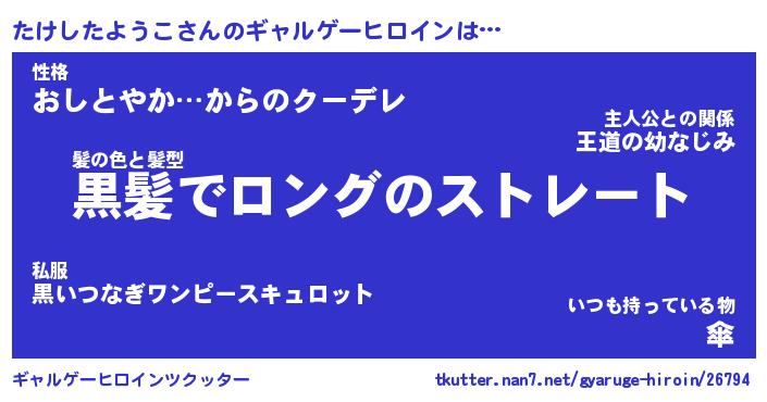 | 男性向けラノベタイトル風あだ名 | 『たけしたようこの憂鬱』 |