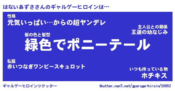 | ヒーロー風カッコイイあだ名 | 『スーパーハナイアズサ』『幻影騎士ハナ』 |