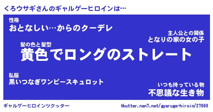 | ファンタジー風あだ名 | 『クロフェル』『エターナルクロウサギー』 |