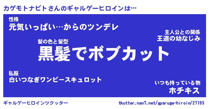 | ファンタジー風あだ名 | 『カゲフェル』『ファントムカゲス』 |