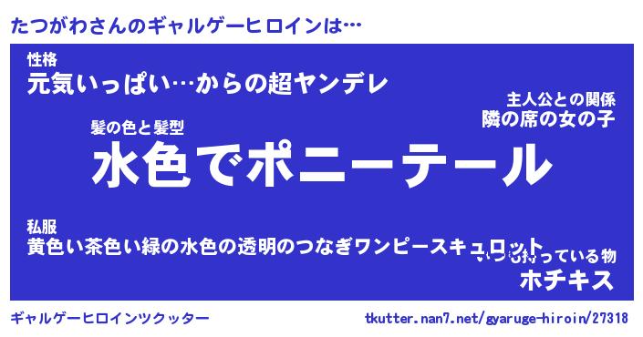 | 男性向けラノベタイトル風あだ名 | 『たつがわの憂鬱』 |