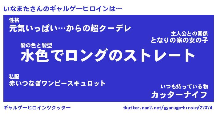 | 男性向けラノベタイトル風あだ名 | 『いなまたの憂鬱』 |
