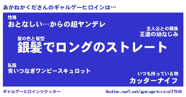 | 男性向けラノベタイトル風あだ名 | 『あかねかくだの憂鬱』 |