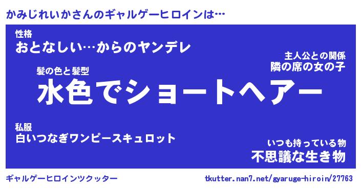 | 伝説のあだ名 | 『伝説の竜騎士かみじれいか』 |