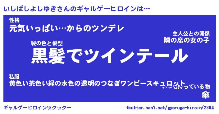 | 男性向けラノベタイトル風あだ名 | 『いしばしよしゆきの憂鬱』 |