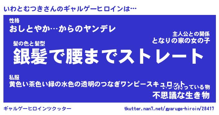 | 女子向けラノベタイトル風あだ名 | 『いわとむつき姫と円卓の騎士』 |