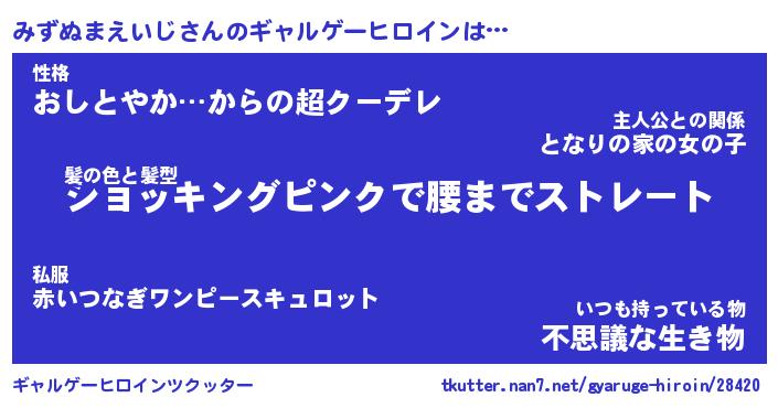 | ポケモン風あだ名 | 『ミズチュウ』『ミズヌダネ』 |