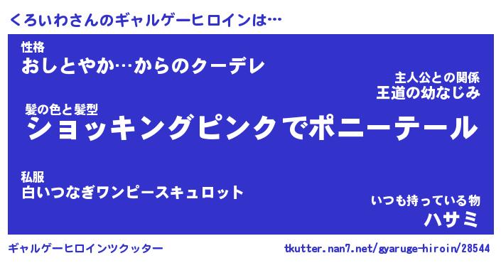 | 男性向けラノベタイトル風あだ名 | 『くろいわの憂鬱』 |