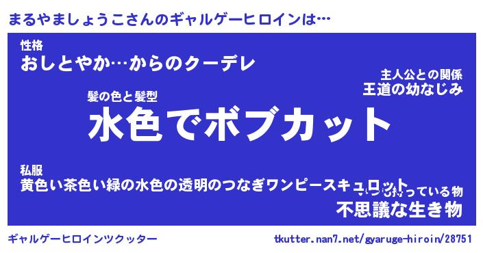 | 女子向けラノベタイトル風あだ名 | 『(仮)まるやましょうこのやんごとなき事情』 |