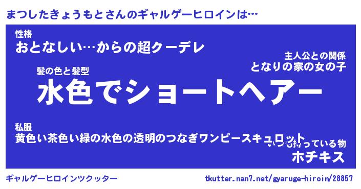 | 女子向けラノベタイトル風あだ名 | 『(仮)まつしたきょうもとのやんごとなき事情』 |