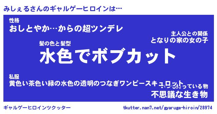 | 男性向けラノベタイトル風あだ名 | 『みしぇるの憂鬱』 |