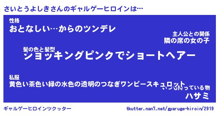| 女子向けラノベタイトル風あだ名 | 『(仮)さいとうよしきのやんごとなき事情』 |