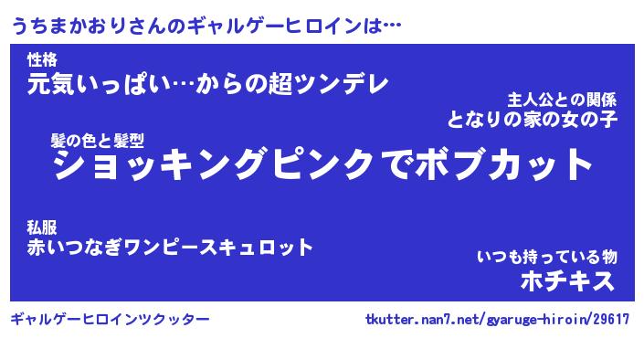 | ヒーロー風カッコイイあだ名 | 『スーパーウチマカオリ』『魔戒騎士ウチ』 |