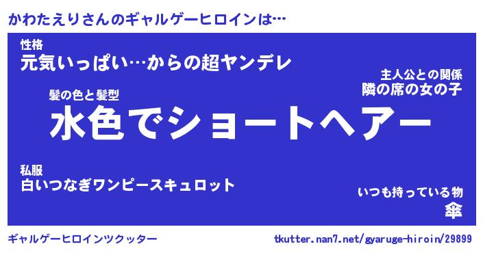 | ファンタジー風あだ名 | 『カワフェル』『エターナルカワタエリー』 |
