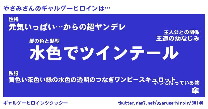 | 男性向けラノベタイトル風あだ名 | 『やさみの憂鬱』 |