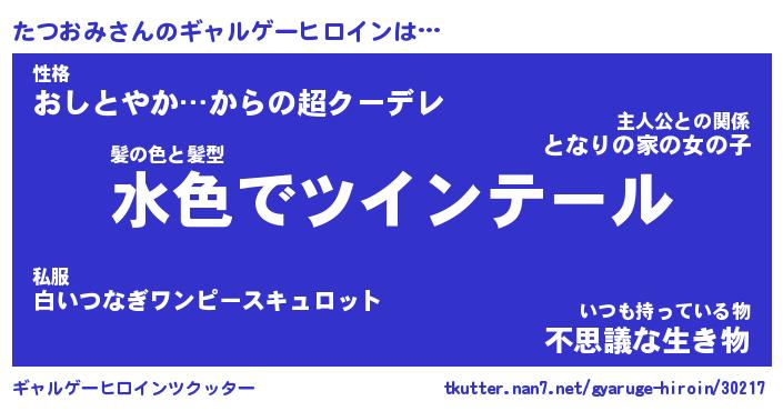 | 男性向けラノベタイトル風あだ名 | 『たつおみの憂鬱』 |