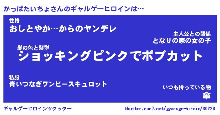 | 女子向けラノベタイトル風あだ名 | 『(仮)かっぱたいちょのやんごとなき事情』 |