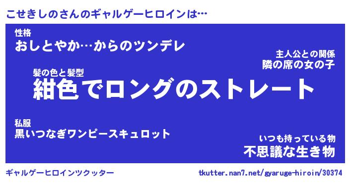 | ファンタジー風あだ名 | 『コセフェル』『エターナルコセキシノー』 |