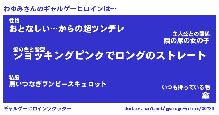 | 男性向けラノベタイトル風あだ名 | 『わゆみの憂鬱』 |