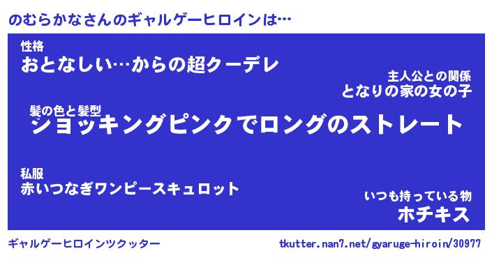 | 女子向けラノベタイトル風あだ名 | 『(仮)のむらかなのやんごとなき事情』 |