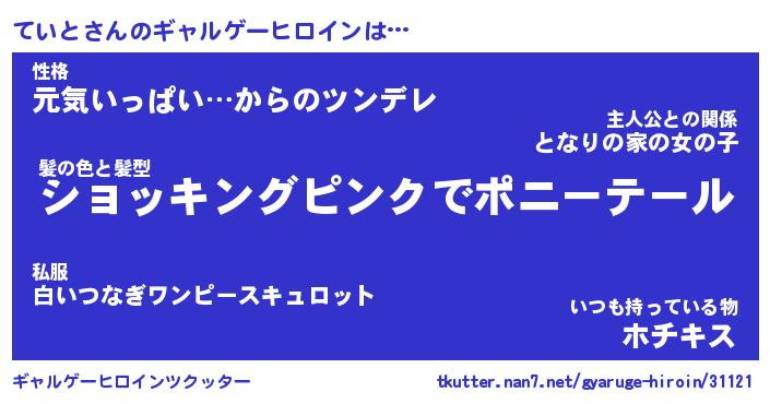 | 男性向けラノベタイトル風あだ名 | 『ていとの憂鬱』 |