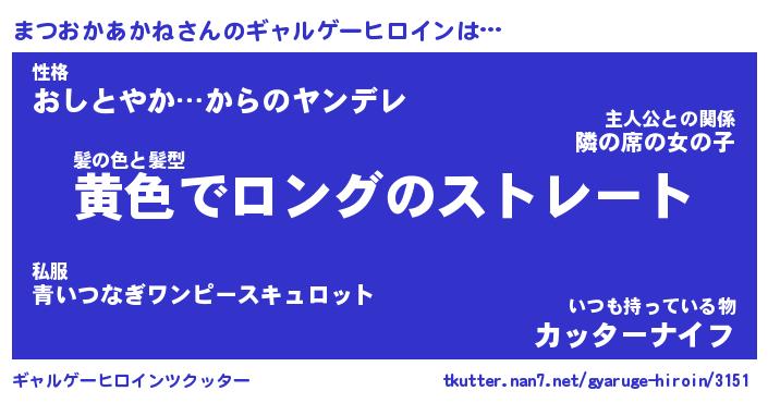 | 女子向けラノベタイトル風あだ名 | 『誰かこのまつおかあかねを説明してください! ~契約から始まるウェディング~』 |
