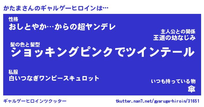 | 女子向けラノベタイトル風あだ名 | 『(仮)かたまのやんごとなき事情』 |