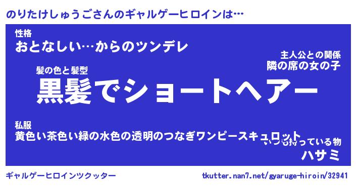 | 男性向けラノベタイトル風あだ名 | 『のりたけしゅうごの憂鬱』 |