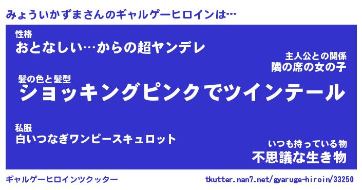 | 男性向けラノベタイトル風あだ名 | 『みょういかずまの憂鬱』 |