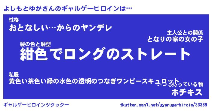 | ヒーロー風カッコイイあだ名 | 『スーパーヨシモトユカ』『幻影騎士ヨシ』 |