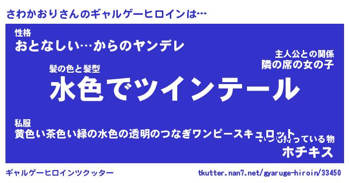 | ヒーロー風カッコイイあだ名 | 『スーパーサワカオリ』『暗黒騎士サワ』 |