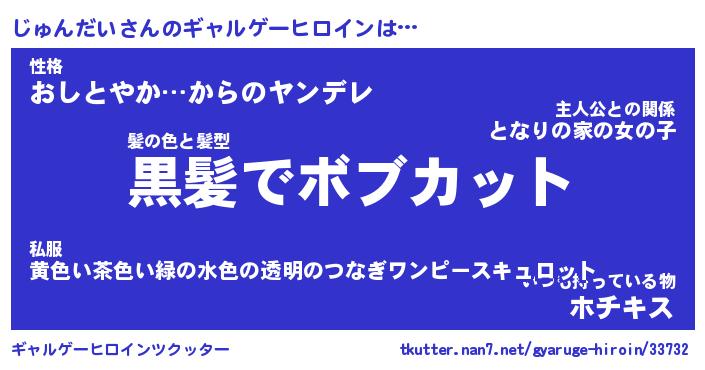 | 男性向けラノベタイトル風あだ名 | 『じゅんだいの憂鬱』 |