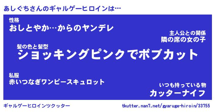 | 女子向けラノベタイトル風あだ名 | 『(仮)あしぐちのやんごとなき事情』 |
