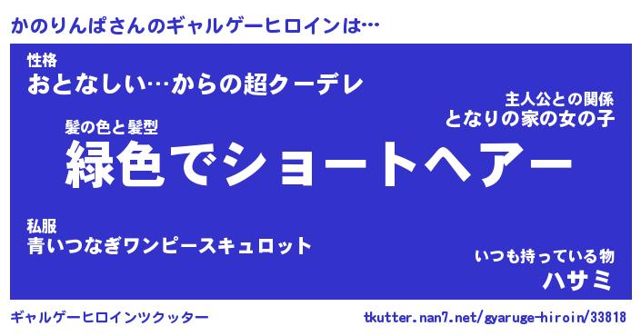 | 男性向けラノベタイトル風あだ名 | 『カノリンパアートオンライン』 |