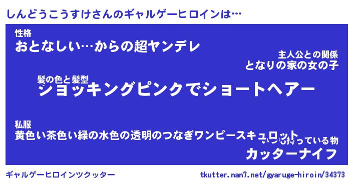 | 女子向けラノベタイトル風あだ名 | 『(仮)しんどうこうすけのやんごとなき事情』 |