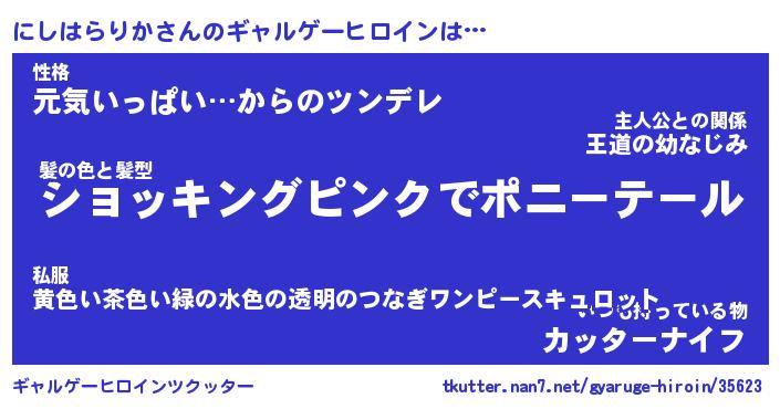 | 男性向けラノベタイトル風あだ名 | 『にしはらりかの憂鬱』 |