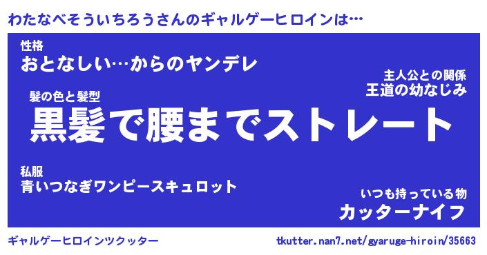 | 男性向けラノベタイトル風あだ名 | 『わたなべそういちろうの憂鬱』 |