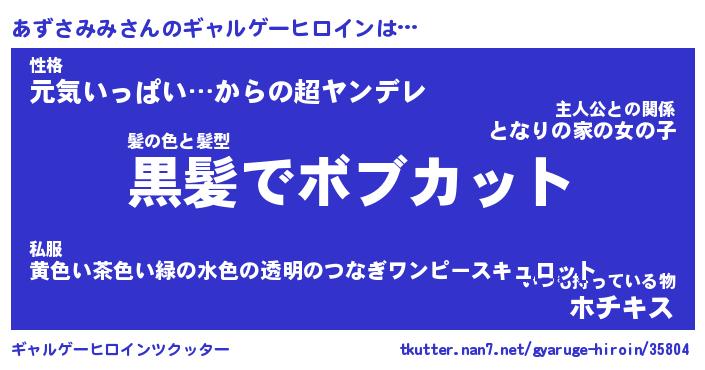 | 男性向けラノベタイトル風あだ名 | 『あずさみみの憂鬱』 |