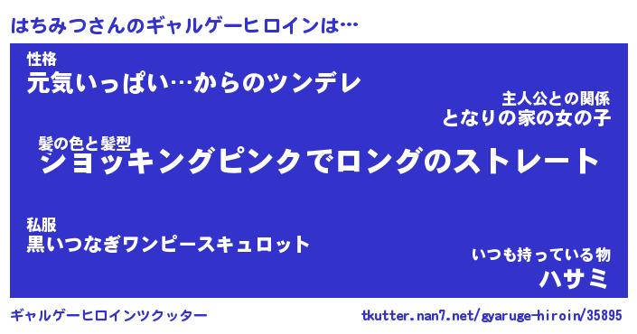| 女子向けラノベタイトル風あだ名 | 『(仮)はちみつのやんごとなき事情』 |