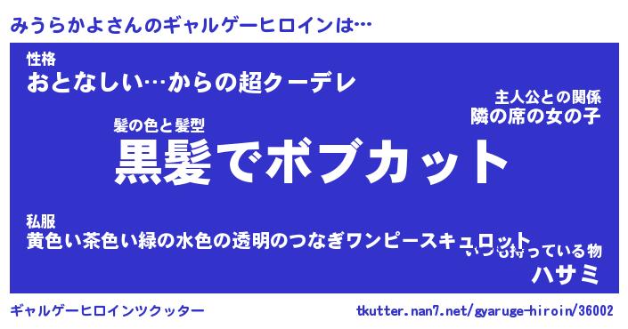 | ファンタジー風あだ名 | 『ミウフェル』『エターナルミウラカヨー』 |