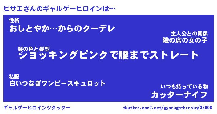 | 女子向けラノベタイトル風あだ名 | 『(仮)ヒサエのやんごとなき事情』 |